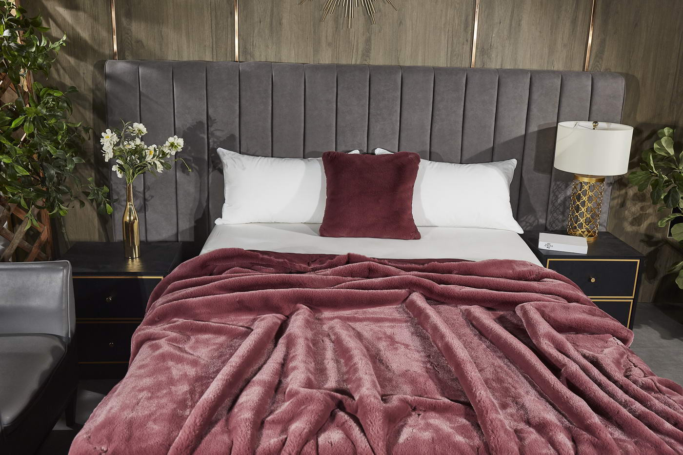 Искусственный мех наволочек, состоящий из 100% вискозы, отсутствие декора на тканях, а также универсальная нюдовая расцветка позволят им идеально вписаться в любое стилистическое пространство. Наволочки могут быть использованы как соло, так и в ансамбле с элегантным пледом Ричард.