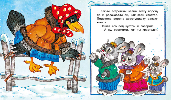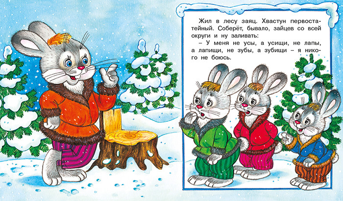 Заяц-хвастаВ данный момент этот товар отсутствует в продаже. Возможно, у нас найдется аналогичный или похожий товар здесь. Серия: Русские народные сказки Книга «Заяц-Хваста» из серии «Сказки» — это одна из самых популярных зимних детских историй. Книга издаётся в удобном среднем формате, в мягкой обложке. Иллюстратор — В.Жигарев. Брошюра содержит 16 цветных офсетных страниц и подходит как для чтения родителями самым маленьким читателям, так и для закрепления навыков самостоятельного чтения у дошкольников. |