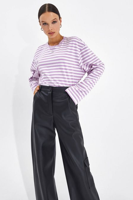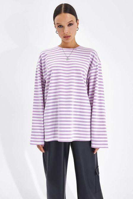 Oversize — тренд, который актуален и в сезоне FW’21/22. Модели подобного кроя можно было увидеть на показах «Versace» и «Louis Vuitton». Oversize-лонгслив от «TOPTOP» выполнен из мягкой смесовой вискозы, которая хорошо сохраняет форму и цвет. Модель дополнена классическим принтом «полоска».