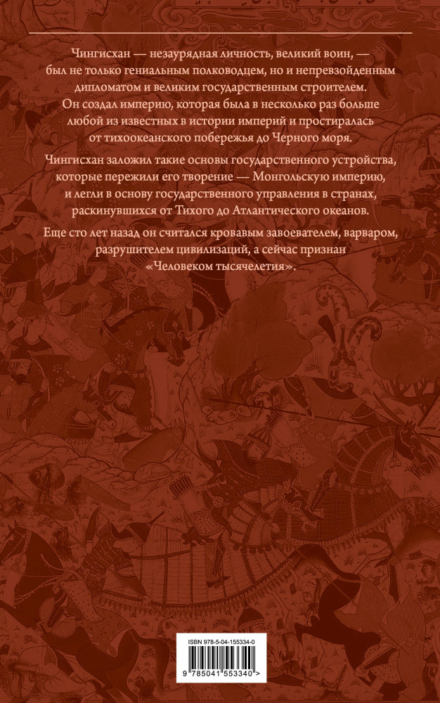 Сокровенное сказание монголов. Великая ЯсаВ данный момент этот товар отсутствует в продаже. Возможно, у нас найдется аналогичный или похожий товар здесь. Серия: Подарочные издания. Опус магнум Эта книга представляет читателю основателя и первого Великого хана Монгольской империи — Чингисхана. Отличительной особенностью книги является ее исключительная полнота: в основе издания древнейший монгольский литературный и исторический памятник — «Сокровенное сказание монголов» в современном переводе, дополненный фрагментами яс (законов) и биликов (высказываний Чингисхана). В приложениях представлены извлечения из тюркских, персидских, китайских и европейских источников, составленных современниками правления Чингисхана и его наследников. Содержательность, аутентичность и увлекательность — главные достоинства книги. Издание богато иллюстрировано, что позволит читателям не просто прочесть о событиях и их участниках, но и увидеть, какими они были. |