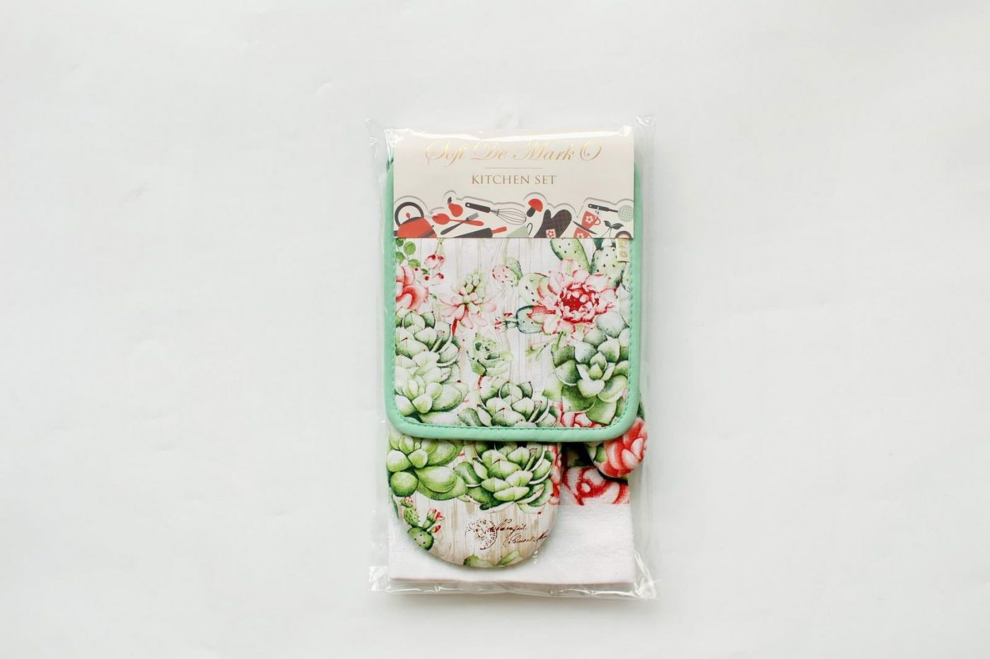Sofi De Marko Набор кухонныйВ данный момент этот товар отсутствует в продаже. Возможно, у нас найдется аналогичный или похожий товар здесь. Кухонные принадлежности с оригинальным рисунком станут не только ярким предметом интерьера Вашей кухни, но и настоящим помощником! Прихватка, варежка и полотенце очень простые и важные предметы на кухне, многие хозяйки отдают предпочтение этим красивым и эстетичным аксессуарам, которые радуют глаз и действительно функциональны. Изделия выполнены из 100% хлопковой ткани. Ткань износостойкая и прочная, не скатывается и не электризуется, гигиеничная и гипоаллергенная, сохраняет свой первоначальный вид и цвет на протяжении всего срока службы. |
