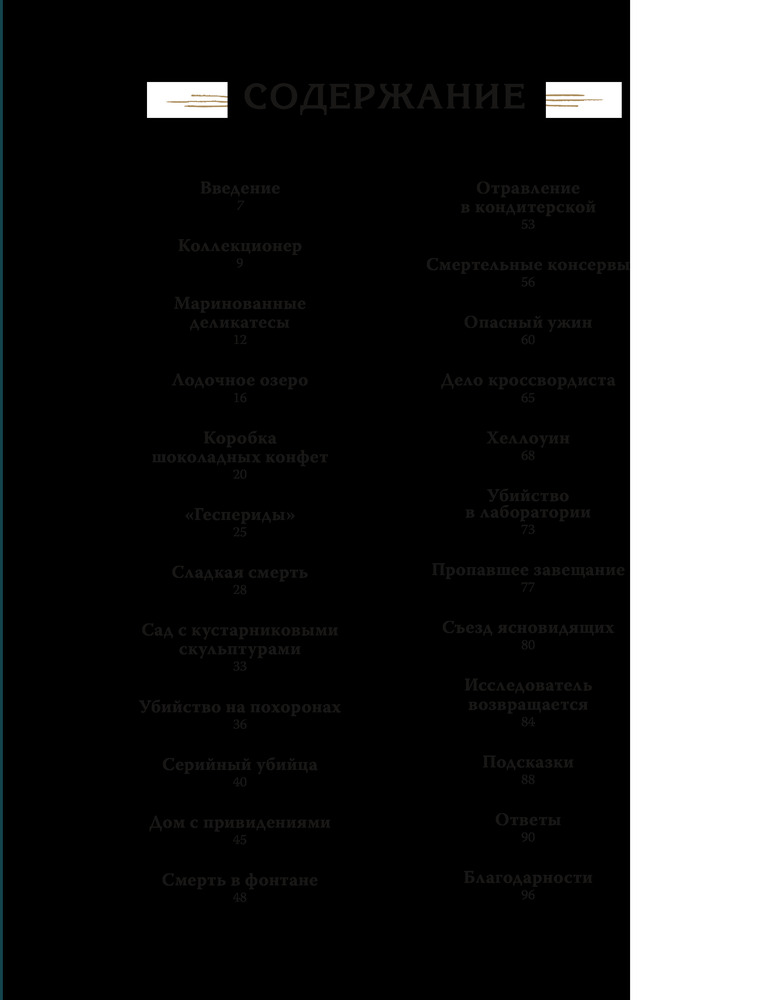 Дело о загадочном убийстве. Почувствуй себя детективом и раскрой 20 таинственных преступленийВ данный момент этот товар отсутствует в продаже. Возможно, у нас найдется аналогичный или похожий товар здесь. Серия: Книга-квест Эта великолепно иллюстрированная книга перенесет вас в атмосферу диких 1920-х. Вы познакомитесь с эксцентричным детективом Медеей Торн и присоединитесь к расследованию 20 таинственных дел. Вы столкнетесь с загадочными убийствами, кражами, отравлениями, темным прошлым... Разгадки спрятаны в тексте и иллюстрациях, но найти их не так просто. В книге собраны 20 детективных головоломок. Сначала читатель знакомится с историей, а потом, опираясь на текст и иллюстрации, определяет, кто совершил преступление. |