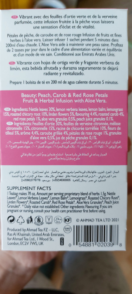 На вкус, как аптечная ромашка. Персика и мяты я там не почувствовала. Может любителям травяных чаёв и понравится, но мне не зашёл.