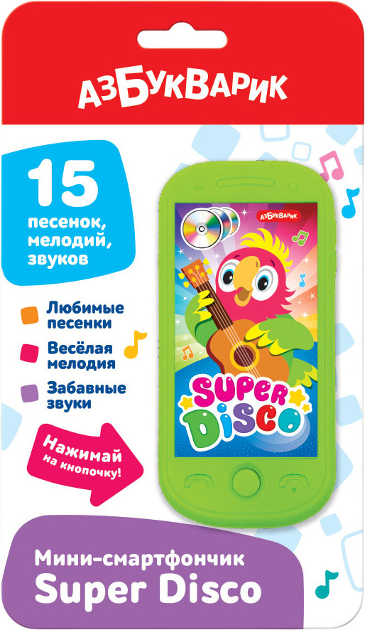 Азбукварик Мини-смартфончик «Super Discot»В данный момент этот товар отсутствует в продаже. Возможно, у нас найдется аналогичный или похожий товар здесь. Серия: Смартфончик Современный мини-смартфончик для современных малышей! Игрушка идеально подойдет для маленьких ручек благодаря небольшому размеру и закруглённым уголкам. Малыш сможет подружиться с веселым попугайчиком и послушать детские хиты («Чунга-чанга», «Арам зам зам», «Весёлая карусель», «Догони», «С днём рожденья тебя!» и др.). На яркую кнопочку захочется нажимать снова и снова! |