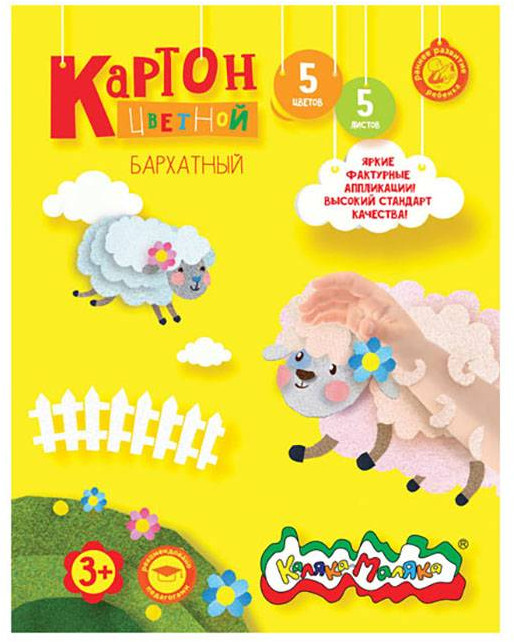Каляка-Маляка Картон цветной бархатныйВ данный момент этот товар отсутствует в продаже. Возможно, у нас найдется аналогичный или похожий товар здесь. Яркие, насыщенные тона бархатного картона предназначены для оригинальных красочных объемных поделок. Бархатный картон прекрасно сочетается в аппликациях и поделках как с цветной бумагой, так и с обычным цветным картоном. |