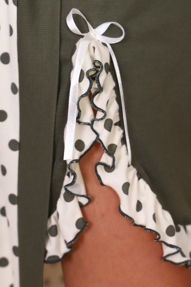 Красивый комплект. Размер, как и рассчитывала, подошел. Пошив и ткань качественные. Смотрится как на модели сайта, плюс то, что не видно на фото - это красиво оформленные воланчиками из ткани в цвет сорочки, края боковых карманов, что придает дополнительный шарм комплекту. Покупкой довольна и рекомендую.