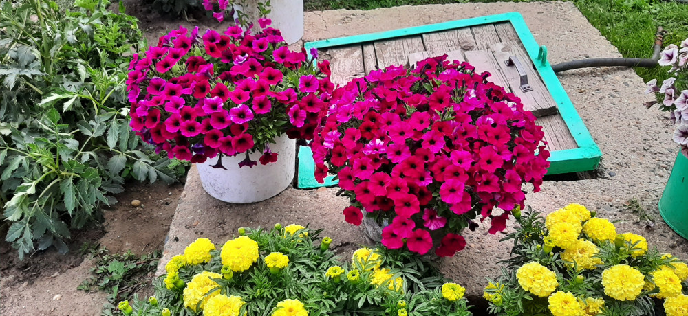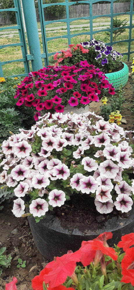 В белом ведре растение от Биотехники, рядом Шок Вейв на много дешевле, разница немного в оттенке, если по кусту, оба шикарные, 2 и 3 фото после обрезки в начале августа. со временем куст разрастается, становится рыхлее, но привлекательность не теряет!