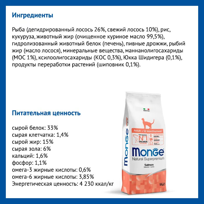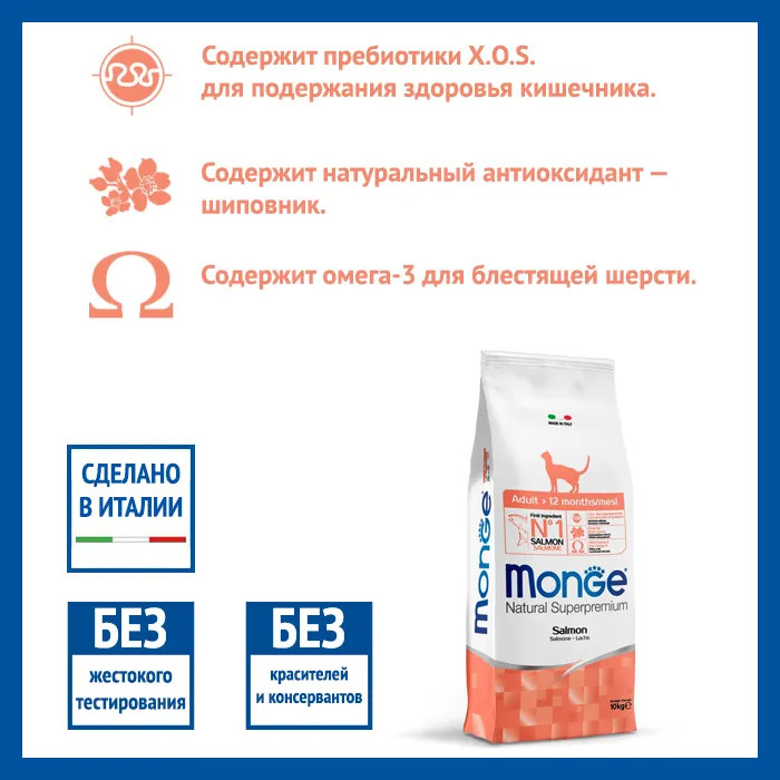 Monge Корм для взрослых кошек с лососемВ данный момент этот товар отсутствует в продаже. Возможно, у нас найдется аналогичный или похожий товар здесь. Серия: Monge Cat Условия хранения товара: температурный режим от -10 до +25°С. |