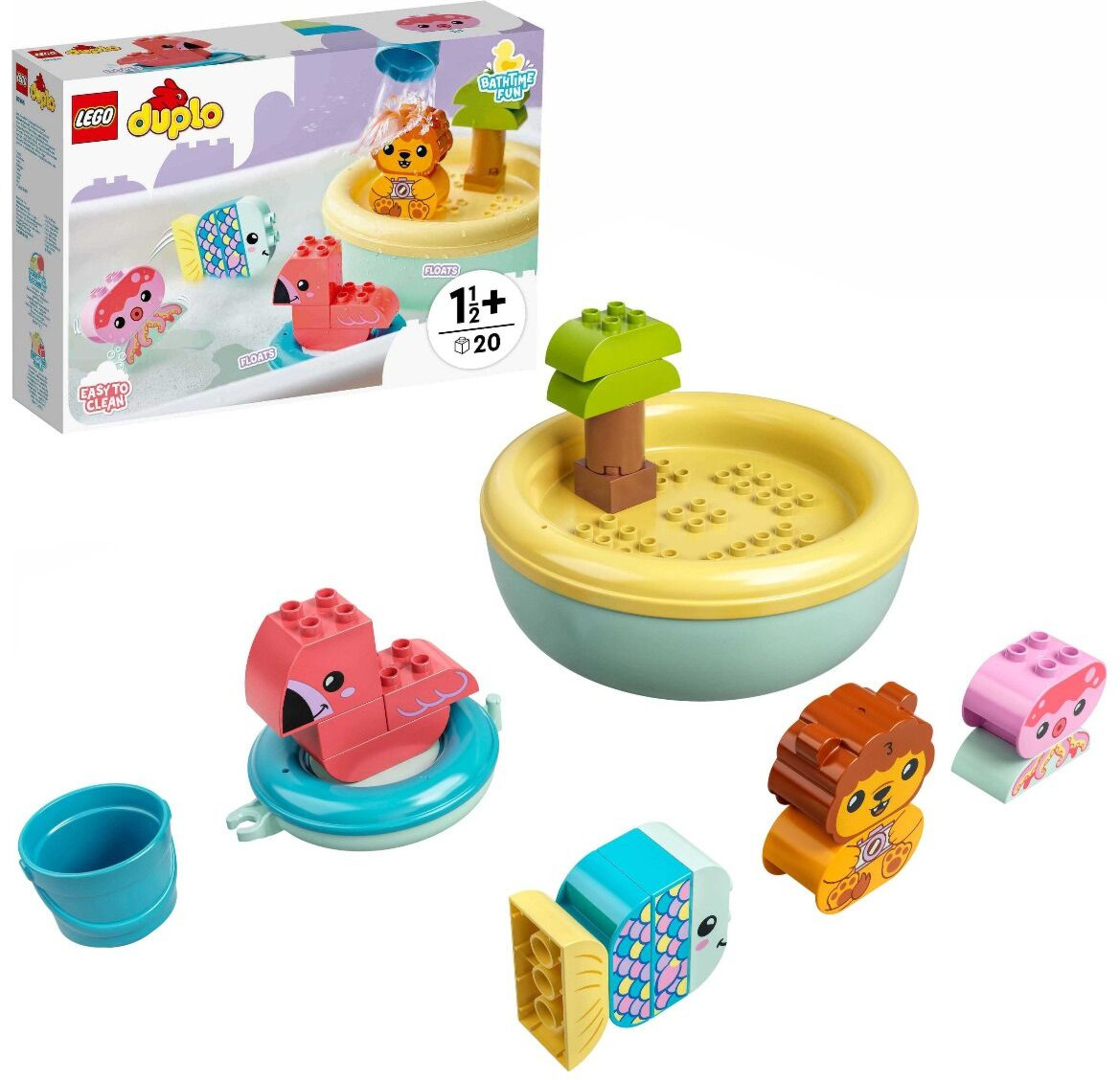 LEGO (ЛЕГО) Конструктор Duplo 10966 Приключения в ванной: плавучий остров для зверей. Bath Time Fun: Floating Animal IslandВ данный момент этот товар отсутствует в продаже. Возможно, у нас найдется аналогичный или похожий товар здесь. Серия: LEGO Duplo «Приключения в ванной: плавучий остров для зверей» — это многофункциональный развивающий игровой набор для детей от 18 месяцев, которые любят животных. Легкая очистка и множество возможностей для игр. Превратите ванну вашего малыша в тропический остров, полный возможностей для развивающих игр! Дружелюбный лев стоит на своем плавучем райском острове, фламинго плавает на круге, а рыбка и осьминог плещутся в воде. На острове есть ведро, чтобы купать животных, и дерево. Остров разделяется на две отдельные плавучие секции, и его легко поддерживать в чистоте от купания к купанию. Обучение в игре для малышей. |