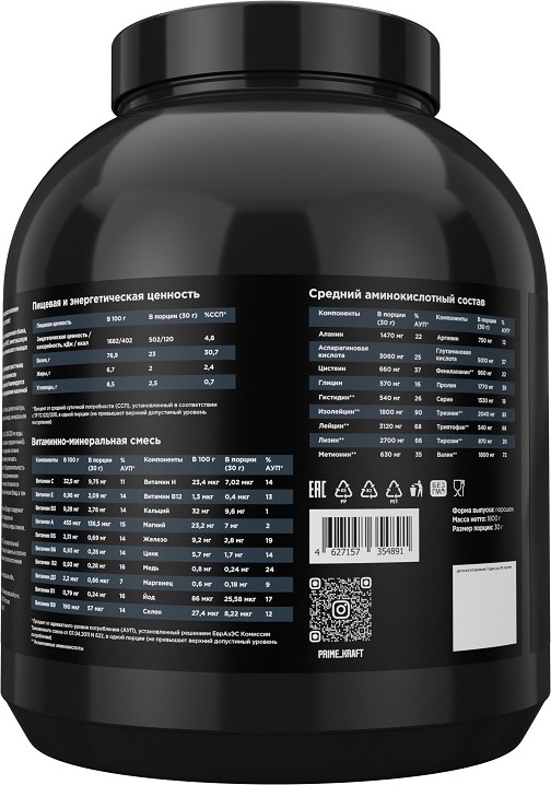 Протеиновый коктейль из смеси концентрата и изолята сывороточного белка, побочного продукта сыроделия. Сырье подвергается естественной фильтрации и распылительной сушке. Эти способы обработки позволяют получить полностью натуральный продукт, сохраняющий все полезные свойства. Отличается оптимальным аминокислотным составом и быстрой скоростью усвоения (около двух часов).