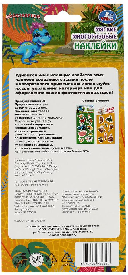 💳 Оплатить за товар можно при получении 🇰🇿 Есть бесплатная доставка по Казахстану от 1 дня 🎁 Копите бонусы с каждой покупки Ребёнок с удовольствием будет приклеивать яркие наклейки с изображением милых динозавриков на альбомы и тетради, создавая на бумаге свои собственные увлекательные истории с их участием, или украшать ими свою комнату. Мягкие стикеры приятны на ощупь, к тому же они многоразовые - их можно переклеивать с места на место не один раз! |
