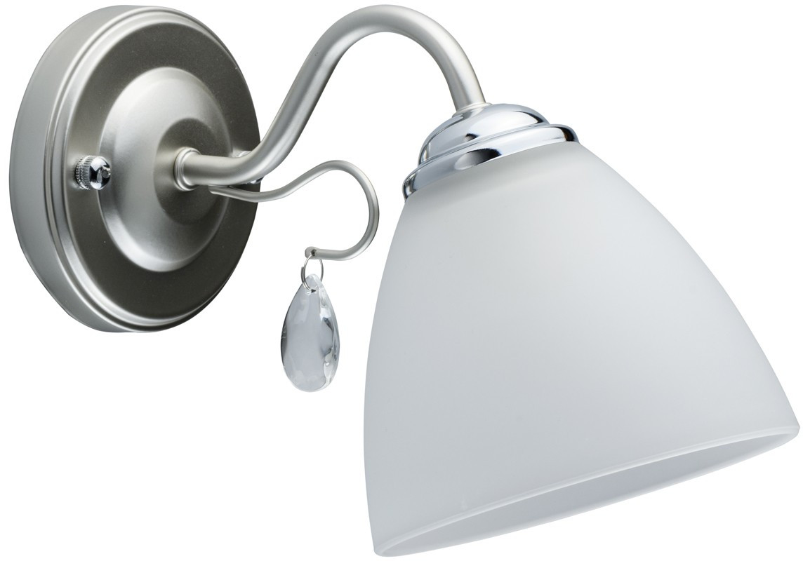 Серия: Нежность Лаконичный светильник для зональное освещения Комбинация фактур металла перламутрового серебра и глянцевого хрома в тренде Декор из хрустального стекла создает дополнительный акцент. Основание светильника выполнено из сплава металла и окрашено в цвет перламутрового серебра. Отдельные элементы основания гальванизированы в цвет хрома. Светильник декорирован стеклянным матированным плафоном и прозрачным хрусталем. |