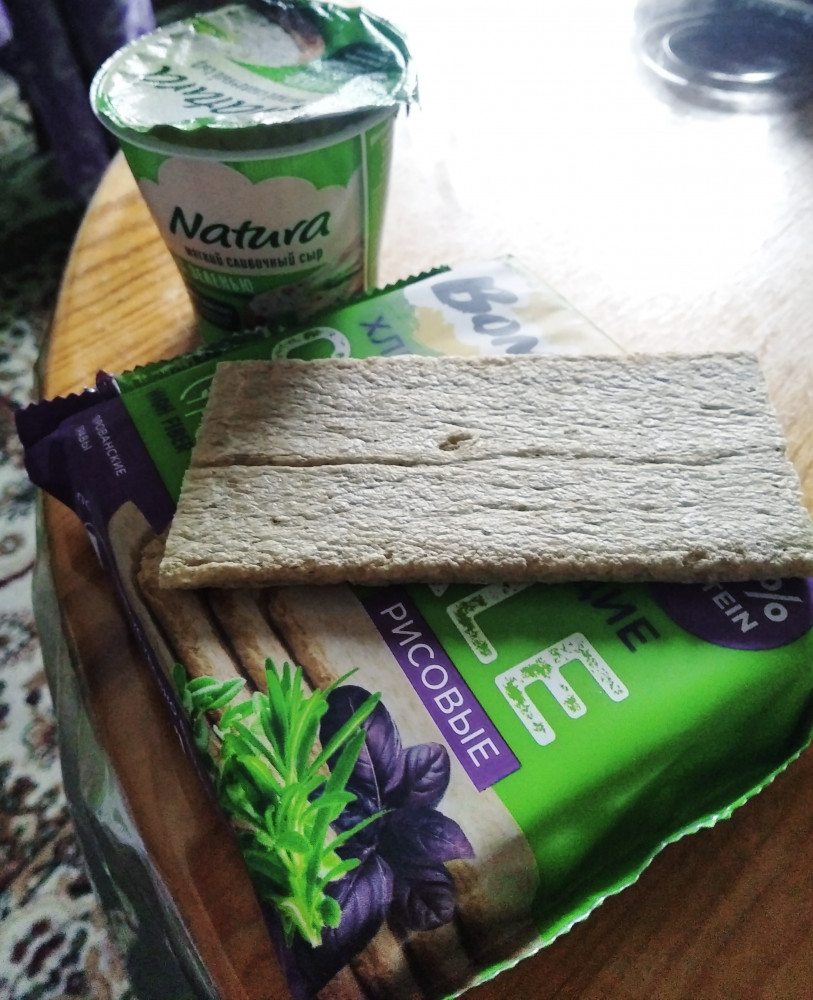 Широкие хлебцы, сразу как открываешь, аромат чебркца (поэтому на любителя). Но всё меняется, когда намазываешь на них сливочный мягкий сыр с зеленью. Очень вкусно и сытно