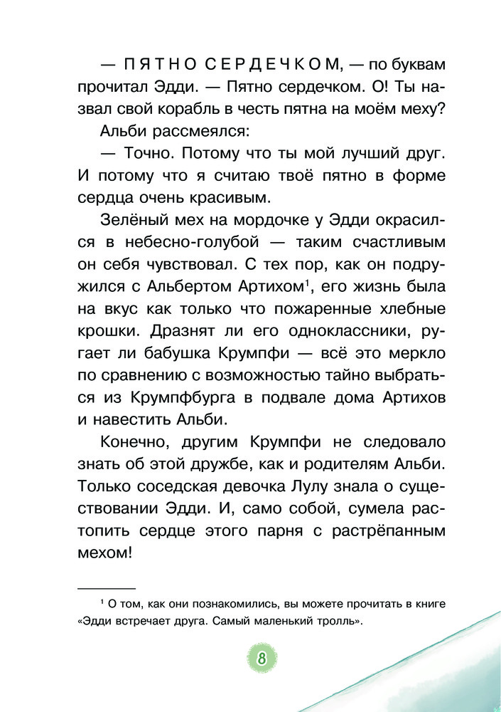 💳 Оплатить за товар можно при получении 🇰🇿 Есть бесплатная доставка по Казахстану 🎁 Копите бонусы с каждой покупки Серия: Приключения Крумпфи-троллей В школе троллей экскурсия. Маленькие тролли учатся спускаться по водосточной трубе. И всё идёт замечательно, как вдруг два ученика бесследно исчезают. Может, они потерялись? Или того хуже — попали в ловушку для крыс? Профессор отправляется на поиски... и тоже пропадает. Теперь всё зависит только от Эдди и его удачи. Но он и сам в опасности. |
