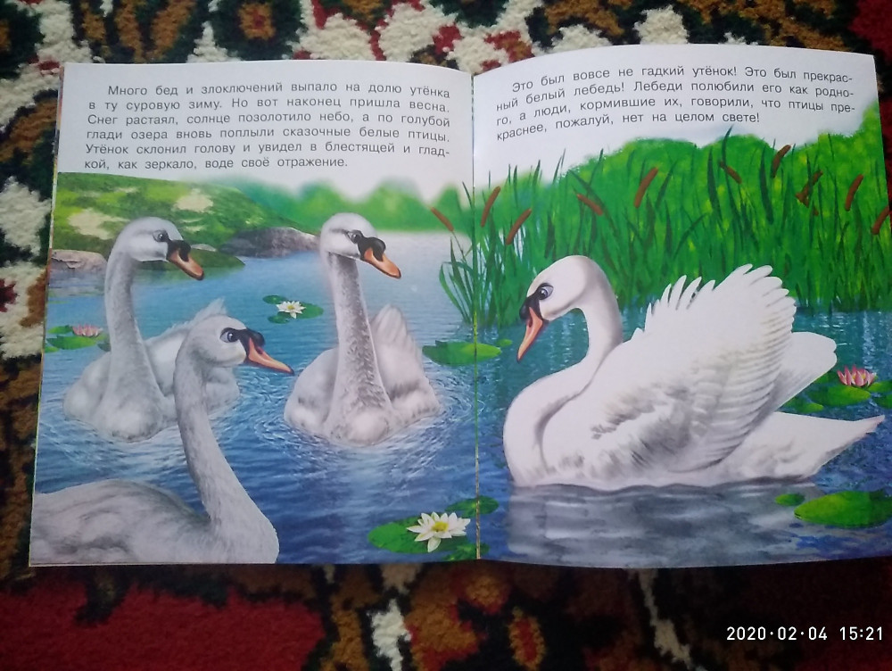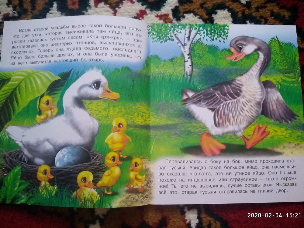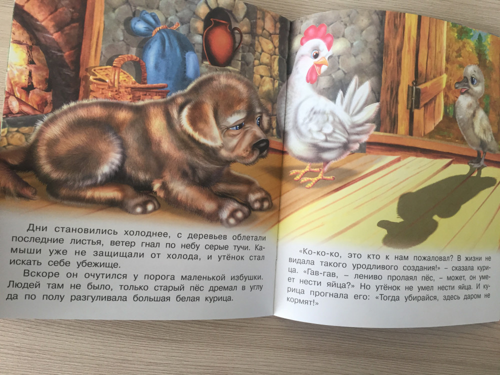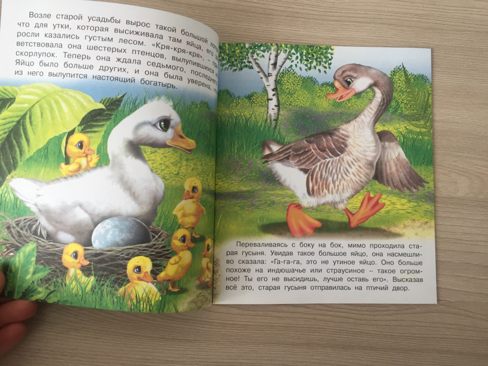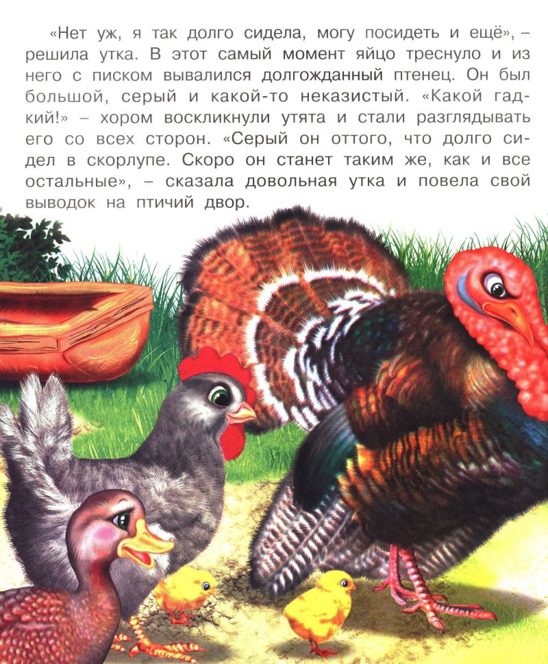 История гадкого утенка, конечно, переработана, значительно упрощена, но общий смысл сохранен. Для 2-3 лет подойдет.