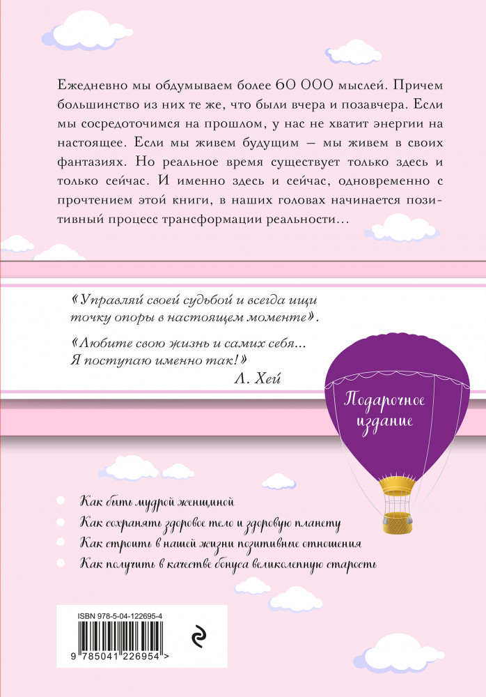 💳 Оплатить за товар можно при получении 🇰🇿 Есть бесплатная доставка по Казахстану от 1 дня 🎁 Копите бонусы с каждой покупки Серия: Луиза Хей. Бестселлеры Одна из самых замечательных книг Луизы Хей — теперь в новом подарочном оформлении с оригинальными иллюстрациями. «Управляй своей судьбой и всегда ищи точку опоры в настоящем моменте», — советует автор бестселлеров Луиза Хей. Ежедневно мы обдумываем более 60 000 мыслей. Причем большинство из них те же, что были вчера и позавчера. Если мы сосредоточимся на прошлом, у нас не хватит энергии на настоящее. Если мы живем будущим — мы живем в своих фантазиях. Но реальное время существует только здесь и только сейчас. И именно здесь и сейчас, одновременно с прочтением этой книги, в наших головах начинается позитивный процесс трансформации реальности. |