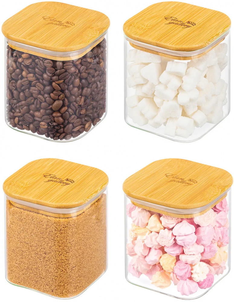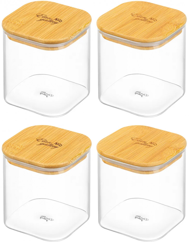 Набор состоит из 4-х банок Crystal glass объемом 800 мл каждая. Банки выполнены из боросиликатного стекла и имеют крышки из натурального бамбука. Подходят для хранения чая, кофе, специй и самых разнообразных продуктов. Стеклянные банки позволяют легко определить содержимое, экономя ваше время и позволяя вовремя пополнять запасы. Стильно выглядят и подходят для организации хранения даже на открытых полках. Крышки плотно закрываются благодаря силиконовым прокладкам.