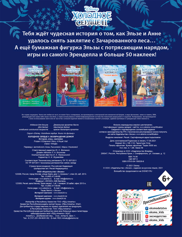 Холодное сердце II. Возвращение домой. История, игры, наклейкиВ данный момент этот товар отсутствует в продаже. Возможно, у нас найдется аналогичный или похожий товар здесь. Серия: Disney. Холодное сердце. Книги по фильму Красочная история с любимыми героями анимационных фильмов «Холодное сердце» и «Холодное сердце II» — читайте и дополняйте наклейками! |