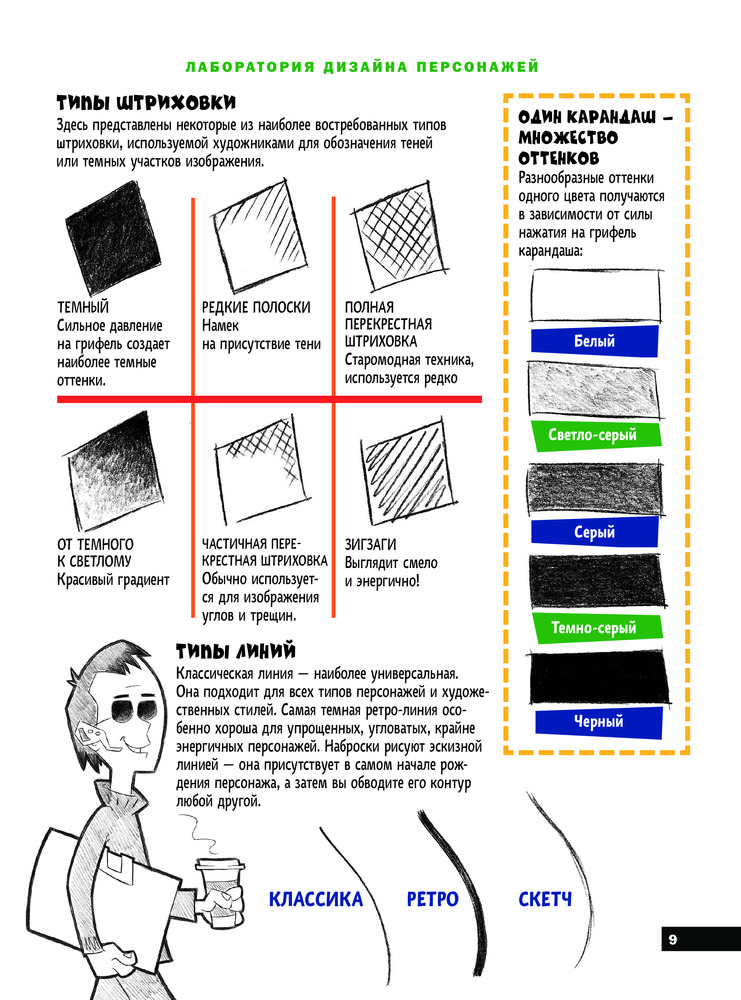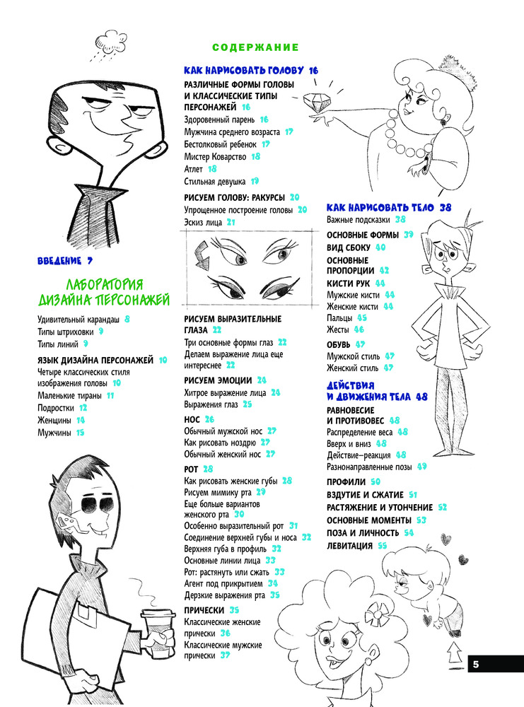 Подробно описано и показано как рисовать людей и детей в разных позах. Забавные комментарии к каждому персонажу. Много практических советов по рисованию того или иного героя, подсказки к мелким деталям и характеристикам персонажей. Отличный самоучитель!