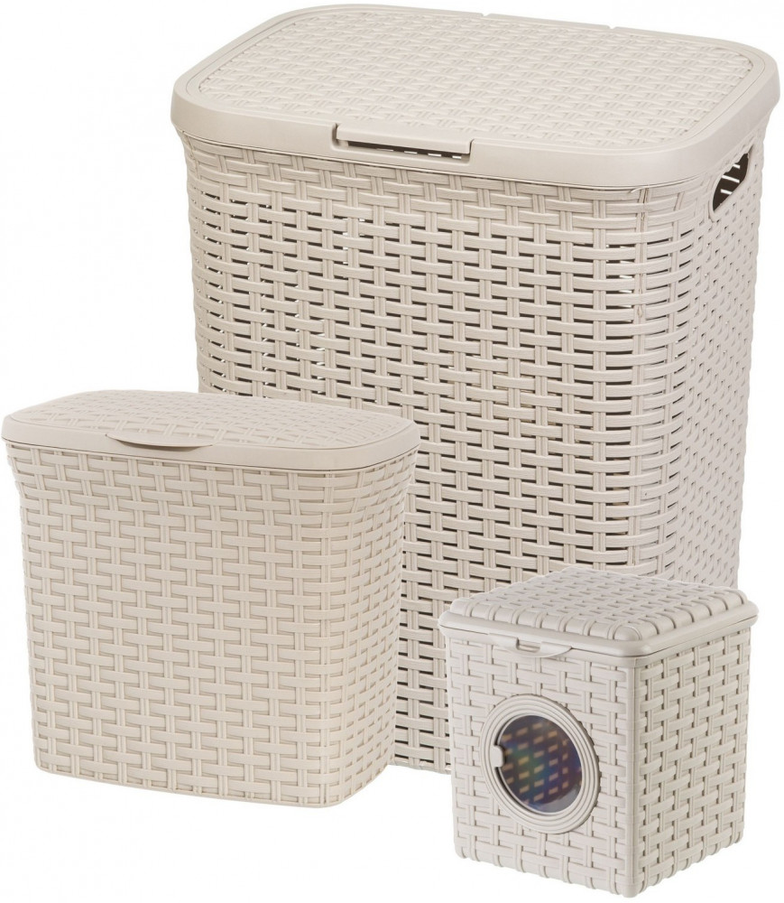 El Casa Набор для ванной комнатыВ данный момент этот товар отсутствует в продаже. Возможно, у нас найдется аналогичный или похожий товар здесь. Серия: Ротанг Набор состоит из корзины для белья, контейнера для стирального порошка и контейнера для мелочей. Пластиковые корзины с декоративным плетением под натуральный ротанг придаст интерьеру атмосферу загородного уюта. Корзина для белья решит проблему хранения большого количества грязного белья. Благодаря своей прямоугольной форме она может быть легко установлена у стены или в углу ванной комнаты. |