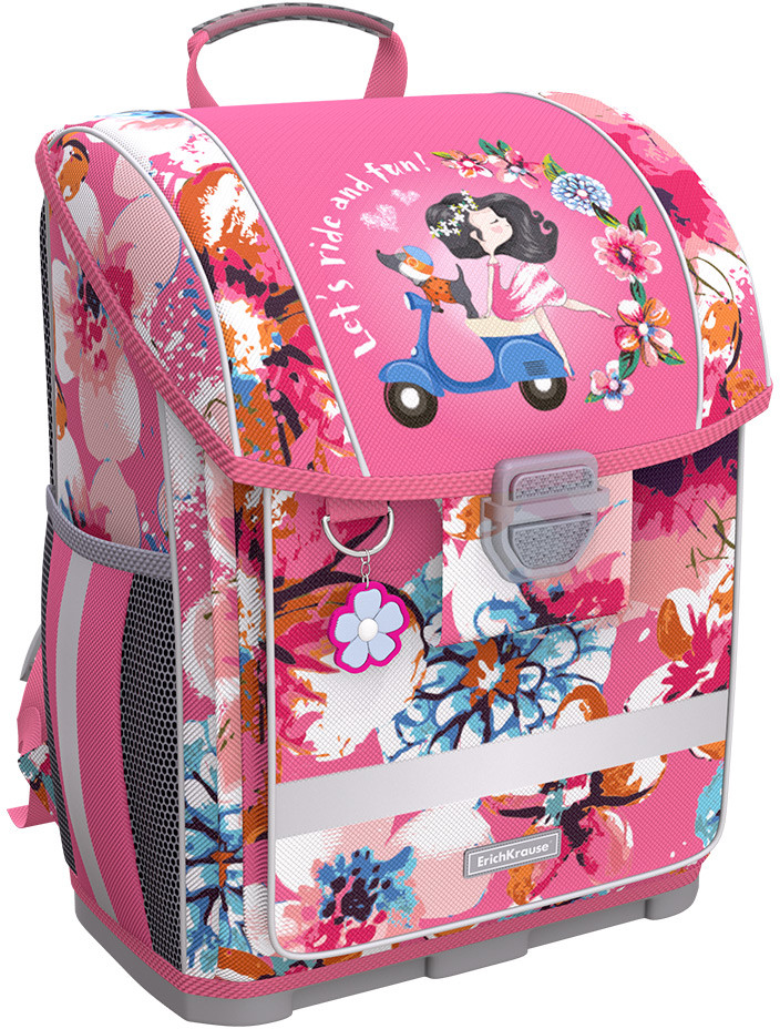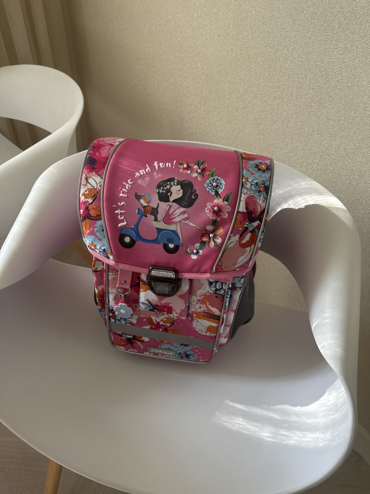 💳 Оплатить за товар можно при получении 🇰🇿 Есть бесплатная доставка по Казахстану от 1 дня 🎁 Копите бонусы с каждой покупки Серия: Flower Scooter Классический жестко-каркасный ранец с эргономичной спинкой и пластиковым дном, делает его одним из самых легких в своей категории (вес указан без дополнительной фурнитуры). Материал: износо- морозостойкий водоотталкивающий 100% полиэстер. Литое дно из ударопрочного пластика обеспечивает дополнительную устойчивость ранца и защиту от загрязнений и влаги. Полезный объем — 16 литров. Три отделения: вместительное основное с фиксатором для учебников и два дополнительных с мини-органайзером. Снаружи два боковых кармана. Конструкция ErgoLine из эргономических подушечек снижает нагрузку на позвоночник. Спинка и внутренняя сторона лямок выполнены из дышащей сетки AirMesh, структура волокон обеспечивает вентиляцию и защиту от трения. Мягкие лямки с противооткидами равномерно распределяют вес и не давят на плечи. |