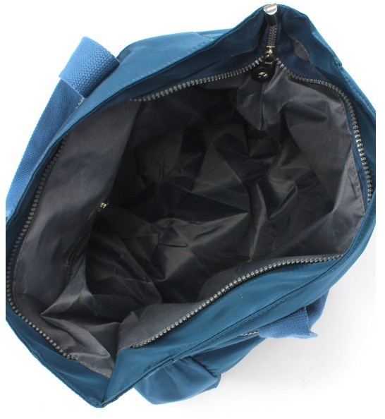 Отличная сумка для разнопланового использования. Например, я ноутбук диагональю 15,6 в ней переношу, может он не так защищен, как специальных сумках, но зато удобно носить на плече. Без внутренних отделов, есть лишь внутренний кармашек на молнии. Подкладочная ткань плотная. Снаружи два кармана на молнии с лицевой и изнаночной стороны и два отдела на резинках по бокам. Ткань типа плащевки, но поплотнее, воду не отталкивает. Пошив без нареканий. Купила сначала цвета хаки, после синего.