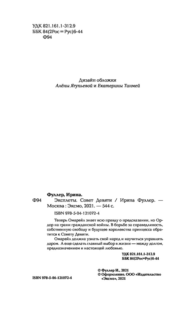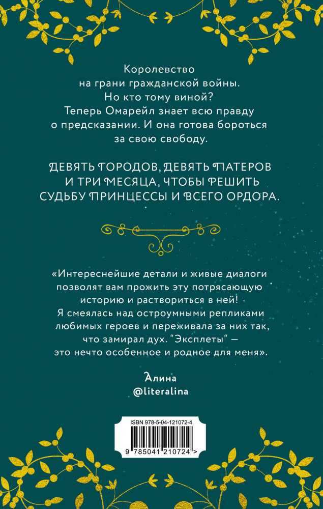 Эксплеты. Совет ДевятиВ данный момент этот товар отсутствует в продаже. Возможно, у нас найдется аналогичный или похожий товар здесь. Серия: Young Adult. Книжный бунт. Новые сказки Теперь Омарейл знает всю правду о предсказании, но Ордор на грани гражданской войны. В борьбе за справедливость, собственную свободу и будущее королевства, принцесса обратится к Совету Девяти. Омарейл должна узнать свой народ и научиться управлять даром. А еще сделать главный выбор в жизни: между долгом, предназначением и настоящей любовью.Продожение приключений принцессы Омарейл, которая сбежала из башни. |