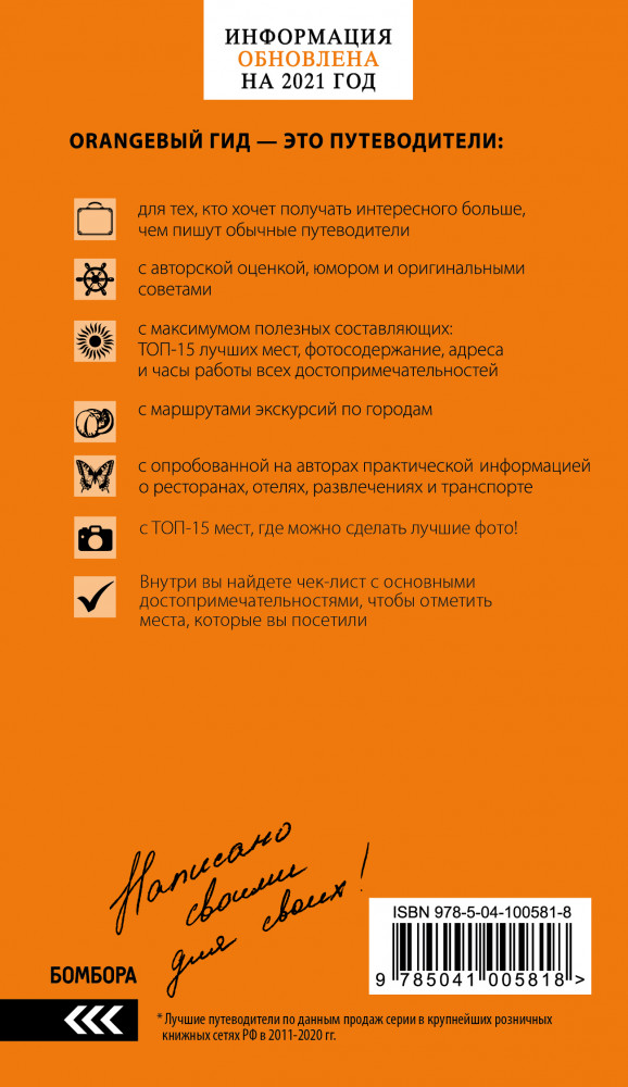 💳 Оплатить за товар можно при получении 🇰🇿 Есть бесплатная доставка по Казахстану от 1 дня 🎁 Копите бонусы с каждой покупки Серия: Оранжевый гид (обложка) Перед вами новый путеводитель по самой зеленой и экологически чистой стране Европы, расположенной на берегу Адриатического моря — Черногории. Красочные фотографии, удобная вложенная карта, полезные советы от автора, куда пойти и как провести время в городах Черногории — все это вы найдете в «Оранжевом гиде», самой разнообразной и яркой серии путеводителей. |