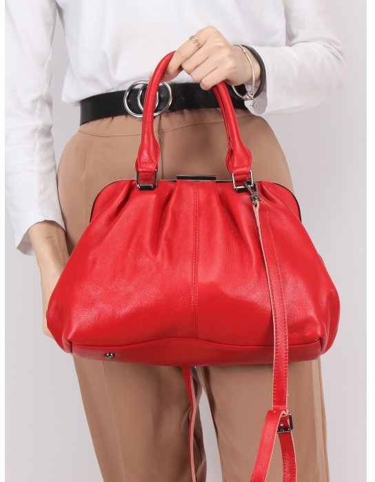 Сумка из натуральной кожи. С виду небольшая (думала будет чуть больше) Но, внутри ооочень вместительная. Единственное, не продумано крепление для плечевого ремня, нет боковых колец. Пришлось крепить на кольцах ручек, не сосем удобно, если честно.