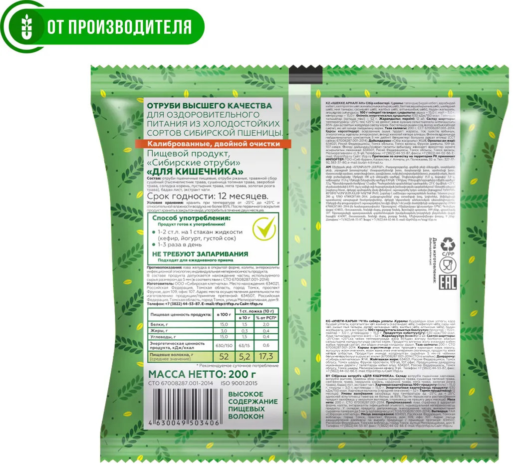Сибирская клетчатка Отруби сибирские «Для кишечника»