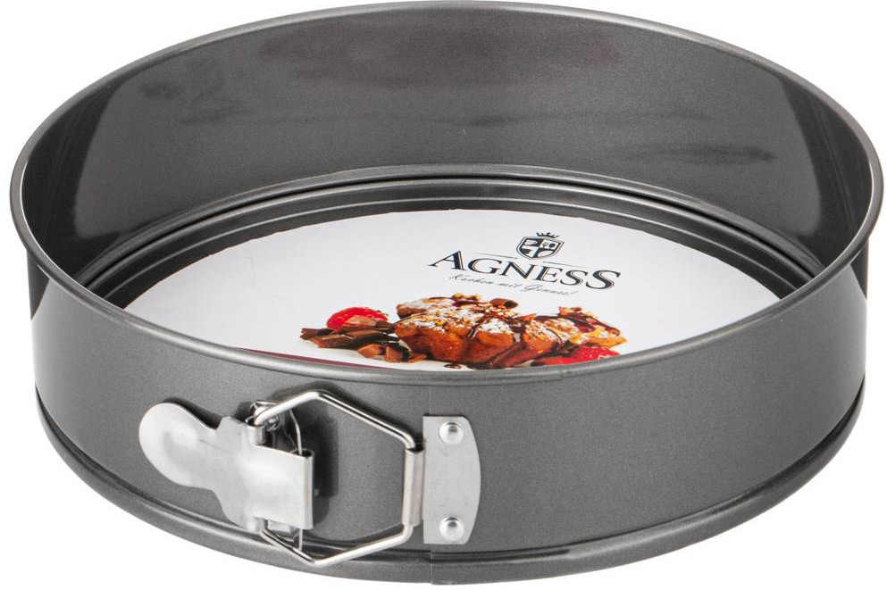 Углеродистая сталь устойчива к механическим и химическим воздействиям, не влияет на вкусовые качества пищи и не подвергается коррозии. Материал не содержит вредных компонентов, не имеет постороннего запаха и не выделяет примесей при нагреве. Внутреннее покрытие не дает выпечке пригореть и облегчает очистку форм. Форма разъемная, поэтому готовая выпечка извлекается легко и удобно. Все что нужно — это просто приподнять рычаг, и стенки формы снимутся сами. Ячеистое дно формирует воздушные подушки, благодаря чему них пирога выпекается равномерно.
