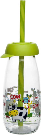 Симпатичная бутылка с трубочкой. Специально купила ребенку, чтобы пил воду и соки из стеклянной ёмкости, обычно такие бутылочки с трубочкой пластмассовые. Довольна покупкой.
