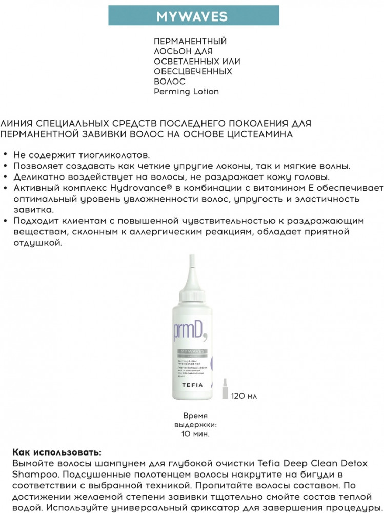 Tefia Лосьон для осветленных или обесцвеченных волос перманентный