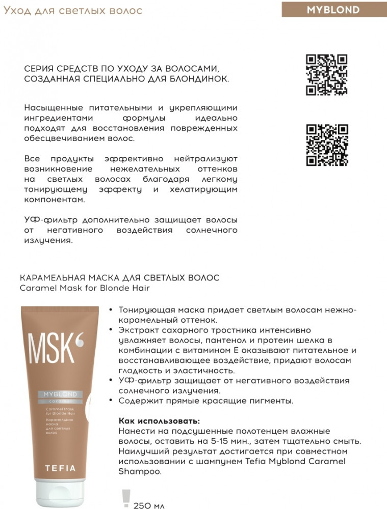 Tefia Маска для светлых волос карамельная