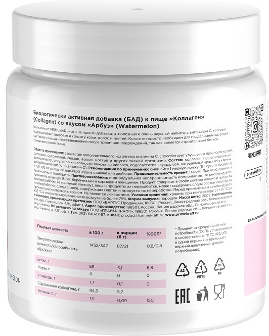 PRIMEKRAFT Коллаген с витамином С «Арбуз»