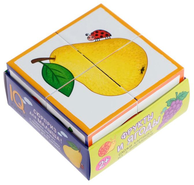 💳 Оплатить за товар можно при получении 🇰🇿 Есть бесплатная доставка по Казахстану от 1 дня 🎁 Копите бонусы с каждой покупки Серия: IQ Кубики Набор состоит из 4 кубиков размером 4×4 см. Ребёнку нужно сложить картинку из 4 фрагментов. В качестве подсказки даны 6 картинок с изображением фруктов и ягод. Картинка кладётся на дно коробочки, и ребёнок ставит на неё нужные кубики. Собирая эти кубики, малыш учится собирать картинки по цвету фигуры и рамки, при этом фон на всех картинках одинаковый — это усложняет задачу. Играя, ребёнок познакомится с ягодами, фруктами, насекомыми и даже беспозвоночными животными. Наклейки на кубики сделаны из качественной гладкой бумаги, которая не портится от игры. А ещё малыша ждёт сюрприз! Если сложить картинку и перевернуть все кубики, появится другая картинка. Набор предназначен для детей от 2 лет. |