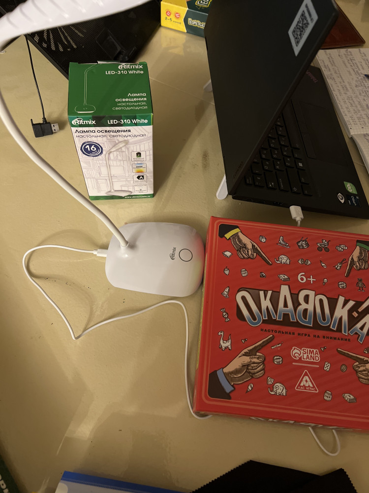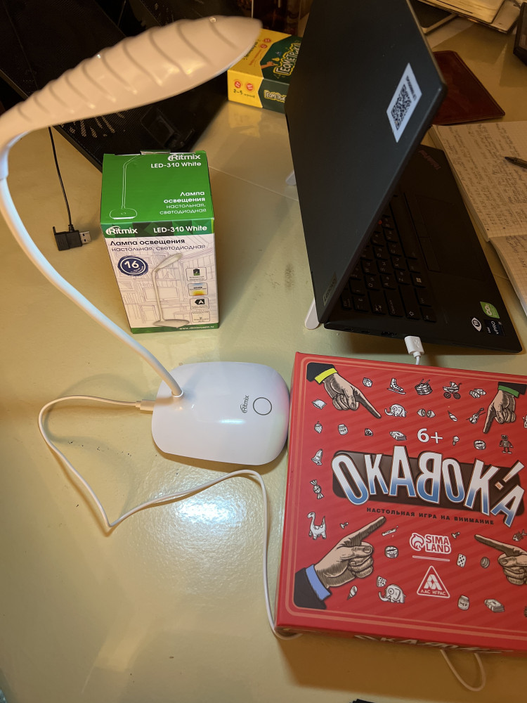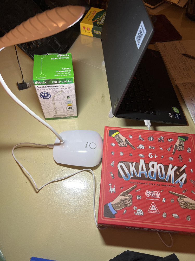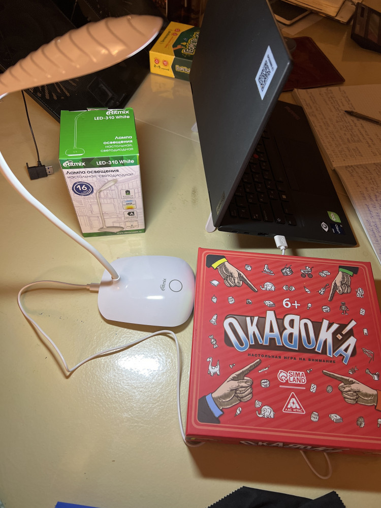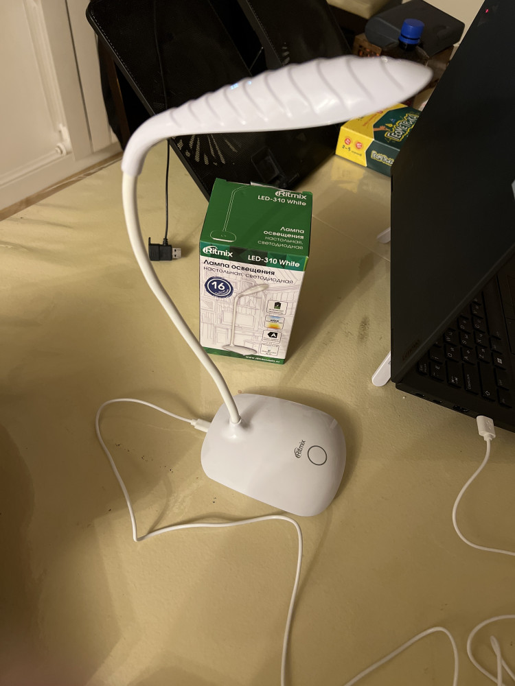 Отличная лампа, лёгкая но устойчивая Элегантно выглядит Пришла в маленькой коробочке, но растягивается Зарядила от компа и быстро зарядилась 3 режима На фото без света и потом 3 режима Самое главное, что когда света нет, она поможет👌