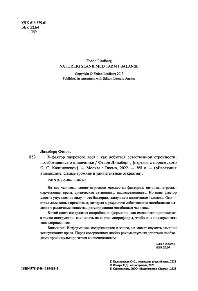 💳 Оплатить за товар можно при получении 🇰🇿 Есть бесплатная доставка по Казахстану от 1 дня 🎁 Копите бонусы с каждой покупки Серия: рЕволюция в медицине. Самые громкие и удивительные открытия На вес человека влияет огромное множество факторов: питание, стрессы, окружающая среда, физическая активность, наследственность. Но один фактор многие упускают из виду — это бактерии, живущие в кишечнике человека. Они — отдельные живые организмы, которые в результате собственного метаболизма выделяют различные вещества, регулирующие метаболизм человека. В этой книге содержится подробная информация, как именно это происходит, а также инструкции, как влиять на состав микрофлоры, чтобы она поддерживала ваш здоровый вес. |