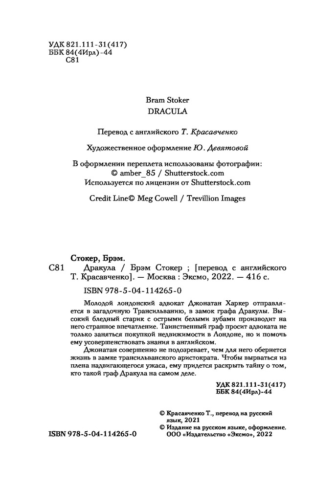 ДракулаВ данный момент этот товар отсутствует в продаже. Возможно, у нас найдется аналогичный или похожий товар здесь. Серия: Young Adult. Сумеречная жажда. Классика Молодой лондонский адвокат Джонатан Харкер отправляется в загадочную Трансильванию, в замок графа Дракулы. Высокий бледный старик с острыми белыми зубами производит на него странное впечатление. Таинственный граф просит адвоката не только заняться покупкой недвижимости в Лондоне, но и помочь ему усовершенствовать знания в английском. Джонатан совершенно не подозревает, чем для него обернется жизнь в замке трансильванского аристократа. Чтобы вырваться из плена надвигающегося ужаса, ему придется раскрыть тайну о том, кто такой граф Дракула на самом деле. |