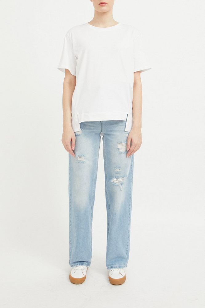 Фасон не обычной футболки и это плюс, взяла на размер больше, чтобы была посвободнее и подлиннее, понравилась.