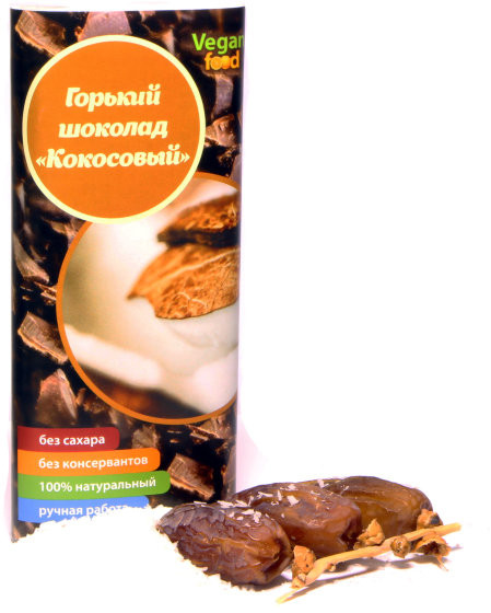 По размеру больше похоже на плоскую конфету, чем на плитку шоколада. Вкус очень на любителя, в составе нет ни сахара, ни заменителя сахара, чуть-чуть сладости только от кусочков финика. Брала кокосовый.