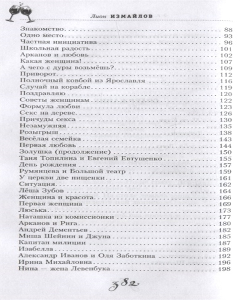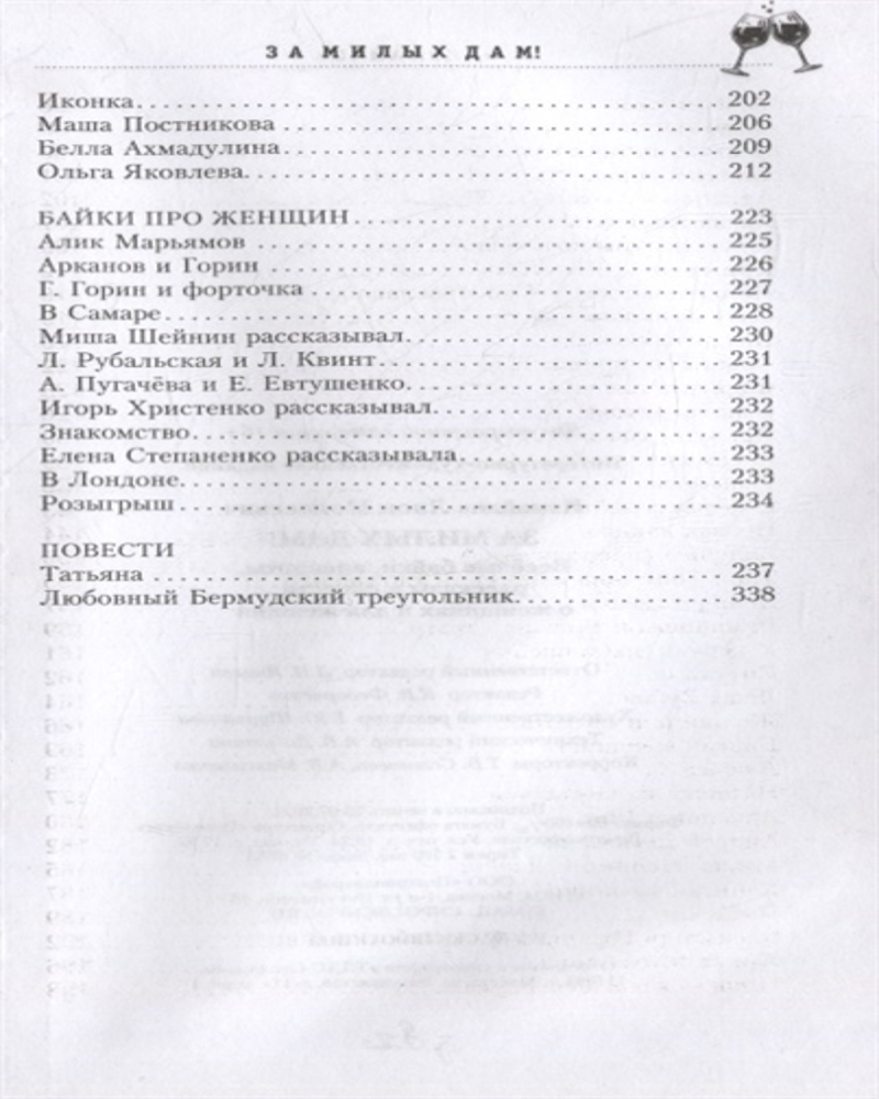 Лион Моисеевич Измайлов знает множество историй, и многие из них посвящены прекрасному полу. Из этого сборника произведений знаменитого острослова мы узнаем, почему женщины лучше мужчин, как правильно знакомиться, что стоит, а что не стоит говорить жёнам, нужно ли вообще жениться и выходить замуж и чем отличается фиктивный брак от настоящего. Появляется на страницах книги и неожиданная интерпретация классических сказок с девушками в главной роли, а также рассказы из жизни вполне реальных женщинзнаменитостей. Не обходит автор вниманием и супружеский долг, а также не совсем супружеский и совсем не долг: оказывается, некоторые виды его исполнения влекут за собой производственные травмы! Завершают сборник две повести, в которых важная роль отведена дамам — роковым и таким привычным, но, на самом деле, тоже роковым. А как иначе! |