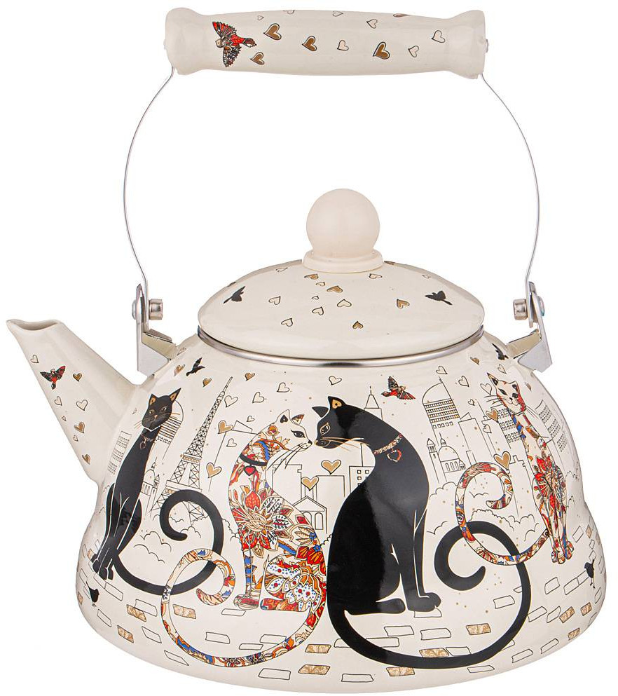 Agness Чайник «Парижские коты»-40% +395 объем дизайн красивый носик