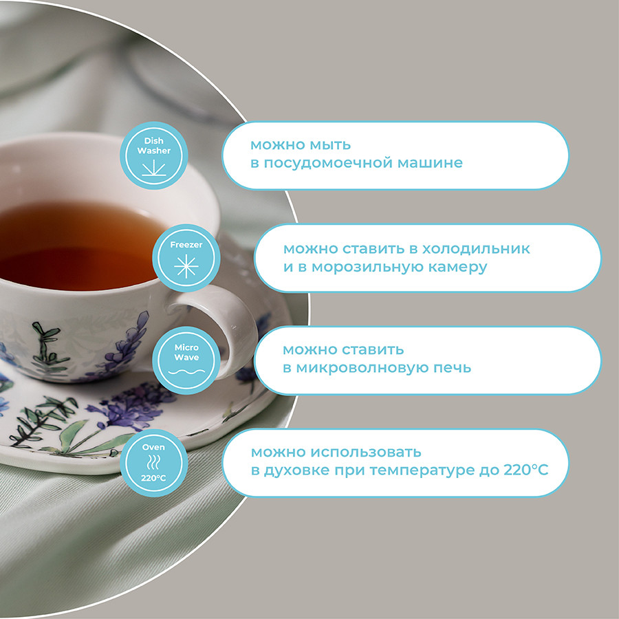 💳 Оплатить за товар можно при получении 🇰🇿 Есть бесплатная доставка по Казахстану от 1 дня 🎁 Копите бонусы с каждой покупки Серия: Floral Набор чайных пар Floral в элегантном дизайне украсит стол и разнообразит сервировку. Яркая цветущая лаванда, изображенная на белоснежной поверхности, превращает изделие в декоративный элемент. |