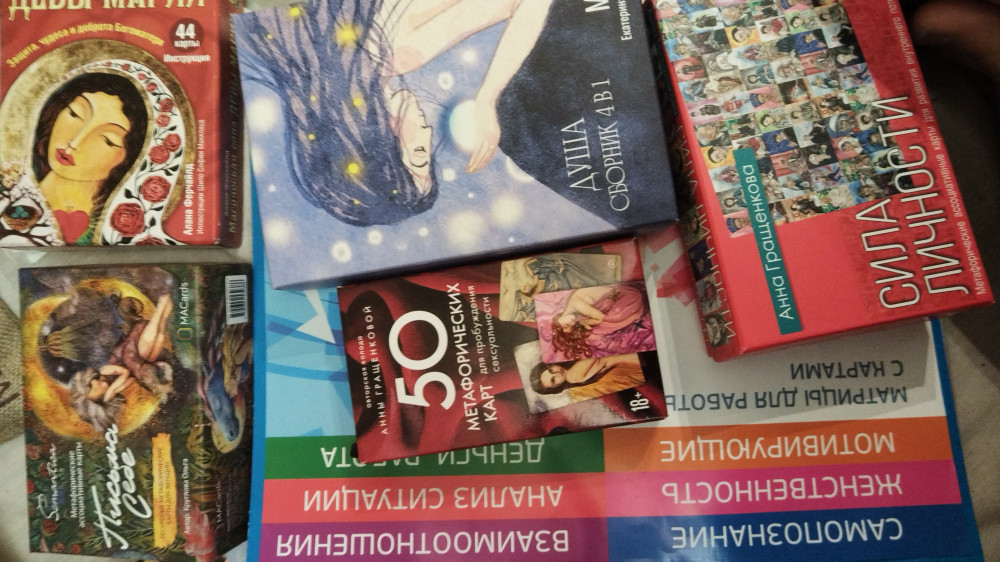 Оценила их спустя время. Использую как МАК портреты при работе не только с женскими состояниями(есть издательство речь там МАК на женские состояния так и называется тоже отлично себя показала), на проработку комплексов, принятия себя и даже в личностном взаимодействии с мужчинами отлично показывает. Лично я, перед тем как что то отрабатывать по запросу с кем то еще, все проверяю на себе. Медитировала на каждую карту в течении длительного времени прежде чем использовать в работу. Как карта дня мне тоже понравилось. Еще на удивление обнаружила что взаимодействует неплохо с родовыми структурами и родовым позвоночником и принятием всей женской линии рода(использовала также+мак душа изд макмагия + сила личности изд речь) прям шикарно отработали. И на ресурсность тоже понравилось использовать. Пробуждение кундалини. Несмотря на название темой сексуальности далеко не ограничена. Универсальная для меня оказалась. Неплохие техники в описании. Можно их развить. В общем и целом очень довольна. Нежные чувственные живые изображения. Все как я люблю. Никакой вульгарности как сейчас насаждают везде и всюду. Надо очень чутко и бережно подходить к тем изображениям с которыми происходит взаимодействие и обмен энергиями.. Данный вариант экологичный. Я проверила.