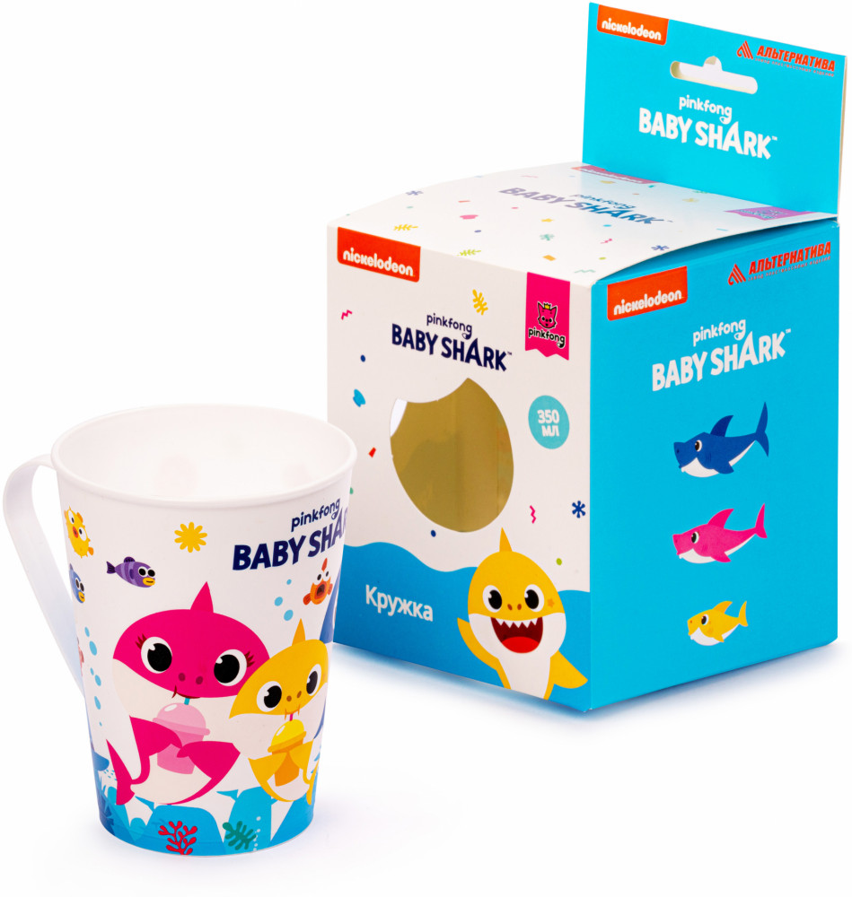 Альтернатива Кружка «Baby shark»-30% +36 яркая расцветка лёгкая удобно пить тонкий пластик хлипкая ручка