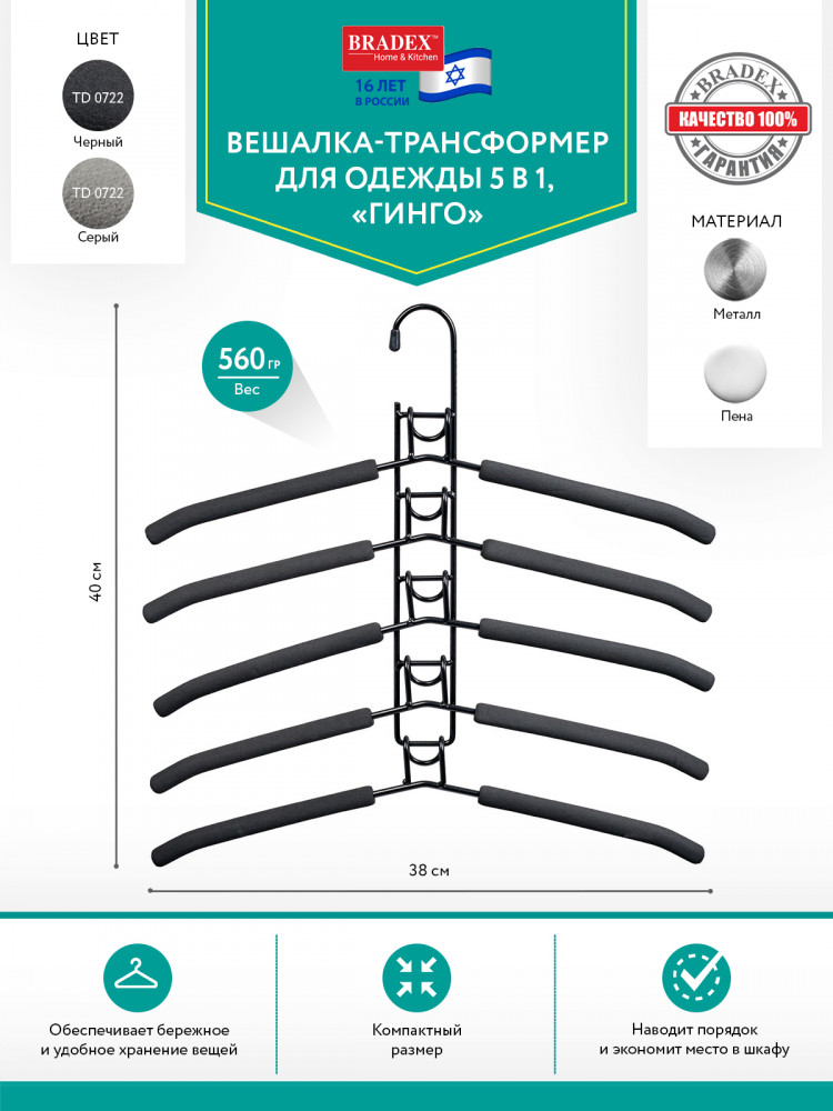 Bradex Вешалка-трансформер для одежды 5 в 1 «Гинго»