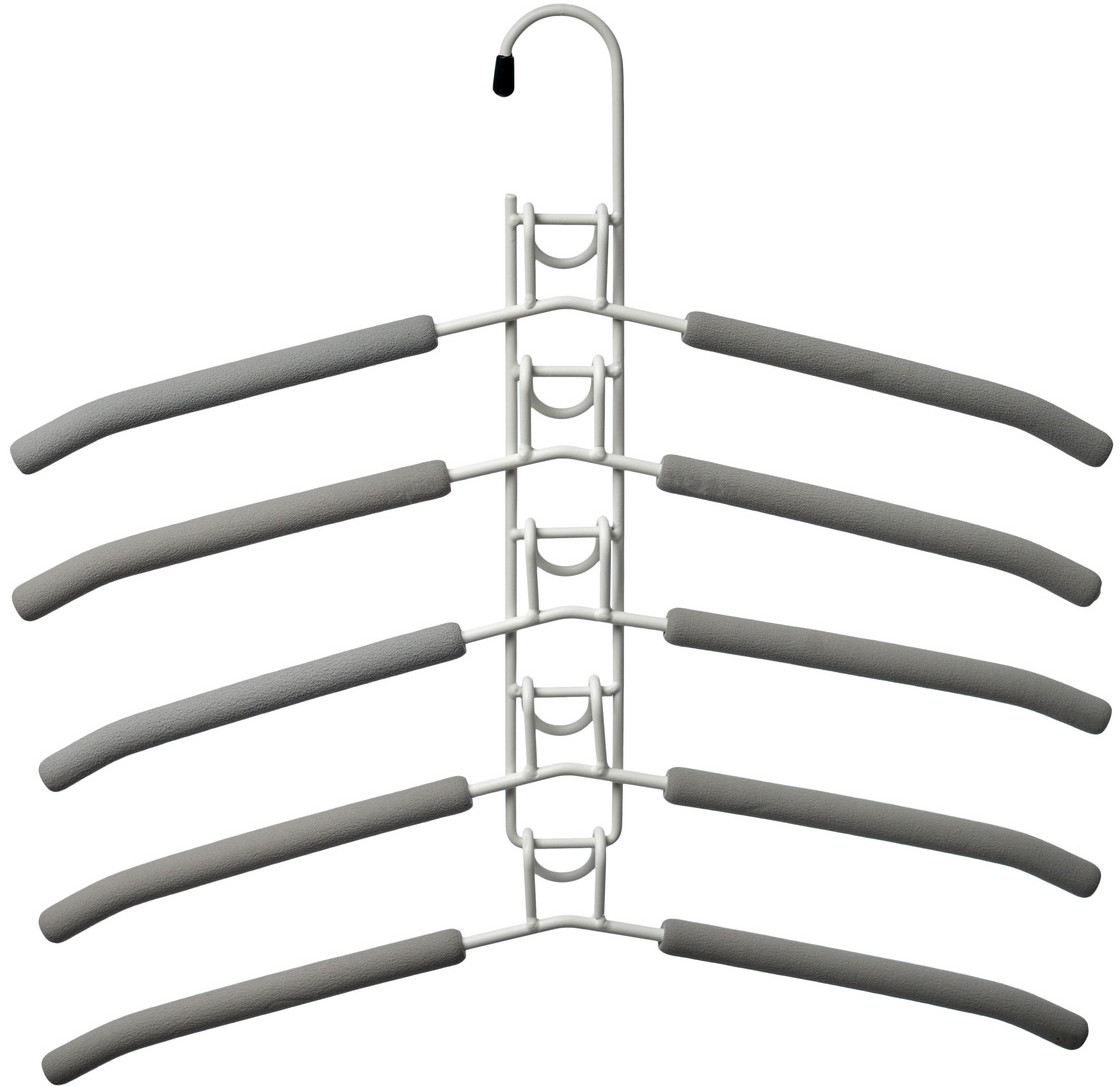 Интересная задумка, развесила 5 блузок вместо 1-2, должна экономить место в шкафу, но кажется может одежда мяться. Плечики нескользящие, посмотрим как поведёт себя в жизни. Хотелось бы цену пониже.