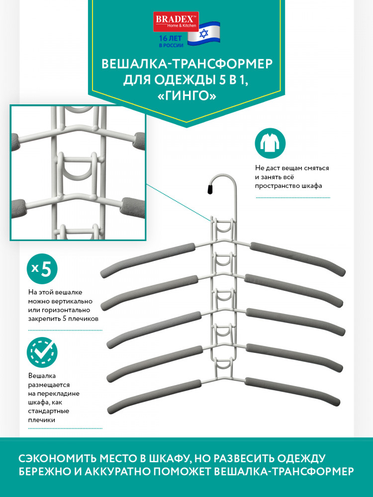 Bradex Вешалка-трансформер для одежды 5 в 1 «Гинго»