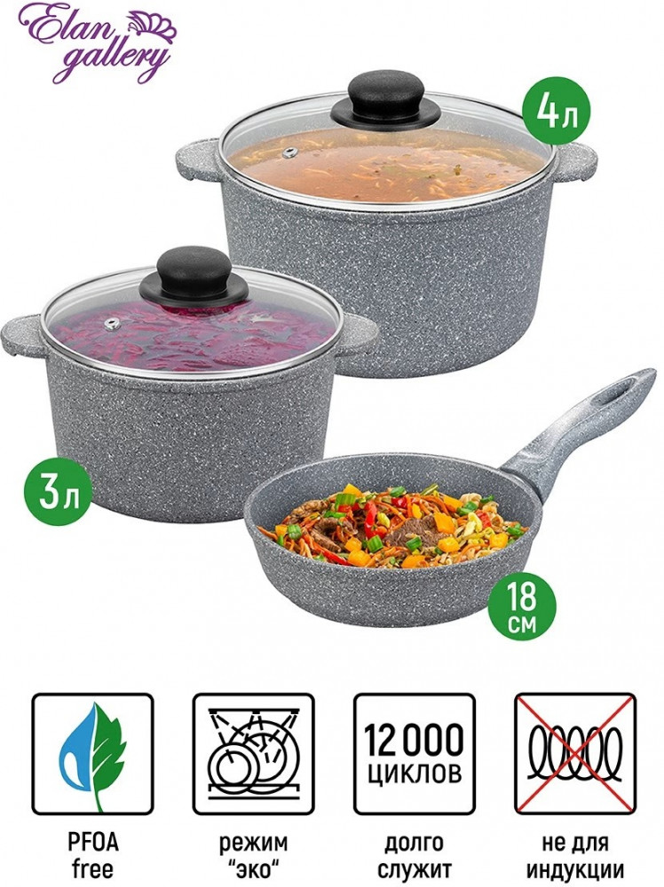 Elan Gallery Набор посуды «Серый мрамор»
